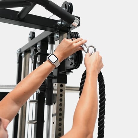 A compact and complete strength and fitness solution with a heap of included attachments, the upgraded Force USA G3® All-In-One Trainer is ideal for those looking to take the next step in their home strength and fitness training. This unit includes a Smith Machine, Functional Trainer, Power Rack, Core Trainer, Multi-Grip Chin Up Station (350kg), plus two optional Upgrade Kits and a Leg Press Plate. With thought-out design and construction, you can perform a huge range of exercises in one convenient setup!