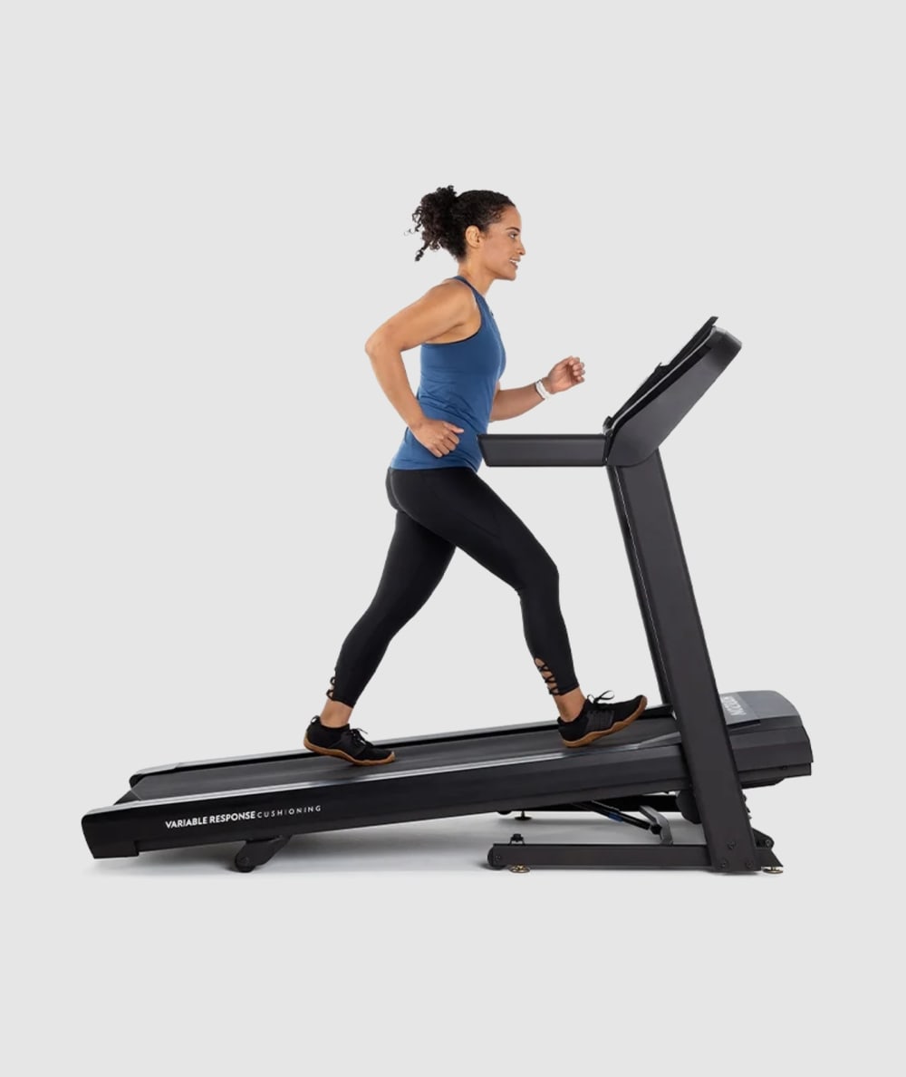 If you’re ready for a run that’s a step up, the T202 will change the way you train with enhanced technology and performance. Advanced Bluetooth connects to multiple devices at once to stream media through vibrant speakers, track your heart rate and more. The extended deck and powerful motor give you everything you need for all-out sprints, and the folding design keeps the T202 out of the way when it’s time to recover.